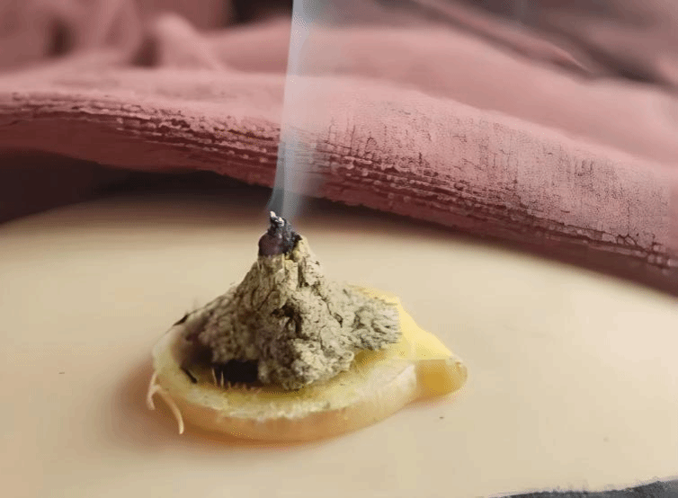 (1) 直接灸:艾炷灸中的直接灸法,是将艾炷直接放置在人体穴位或病灶部位的皮肤上进行施灸的一种传统灸疗方法,其通过艾绒燃烧产生的温热刺激和药物作用,直达病所,发挥防治疾病的功效。这种方法在中医临床应用中历史悠久,因其作用直接、疗效显著而被广泛采用。