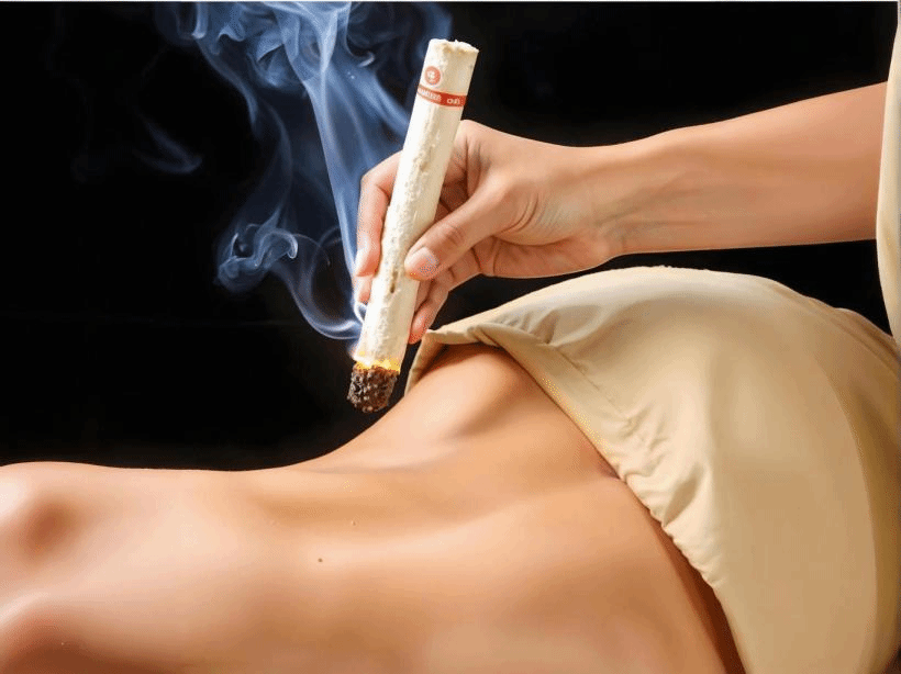 (1)悬灸:悬灸法作为艾条灸的核心技术形式,通过将点燃的艾条悬置于体表特定部位上方,实现艾热辐射的精准渗透。其技术精髓在于动态调控艾火与皮肤的距离(通常保持2-3厘米基准),使热刺激既能深达组织深层又避免灼伤皮肤,形成"温而不灼,透而不伤"的独特治疗效应。操作时采用执笔式持艾,腕部放松以灵活实施三类经典手法:固定高度的温和灸可维持持续温热感,适用于虚寒证候;忽近忽远的雀啄灸(1-4厘米区间动态调节)增强刺激强度,多用于急症痛症;回旋灸则以穴位为中心环形移动,扩展热作用面积以疏通经络。这种距离调控机制使悬灸具备双向调节特性——既可温补阳气,又能消散瘀滞,成为寒证、虚证及痛证的首选疗法。