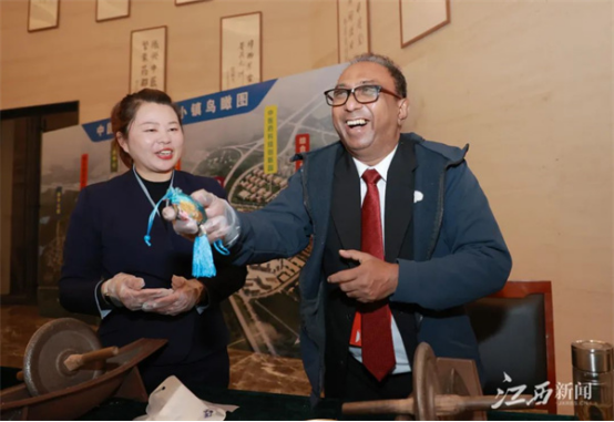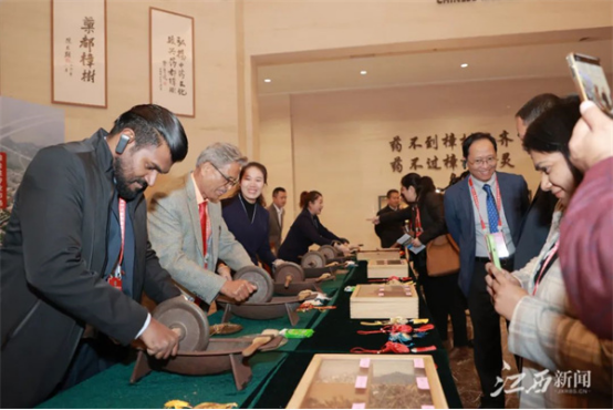 11月30日,参加2023上海合作组织传统医学论坛的外国嘉宾走进樟树,来到仁和“863”科技园,樟帮中医药一条街,中国药都中医药博物馆等地,观摩中医诊疗服务,体验九牛草艾灸,现场制作中草药香囊,感受中医药的“温暖”与神奇。