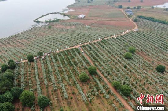 航拍江西樟树义成镇罗港村近五千亩栀子花种植基地。姜涛摄
