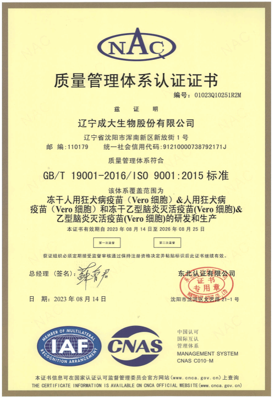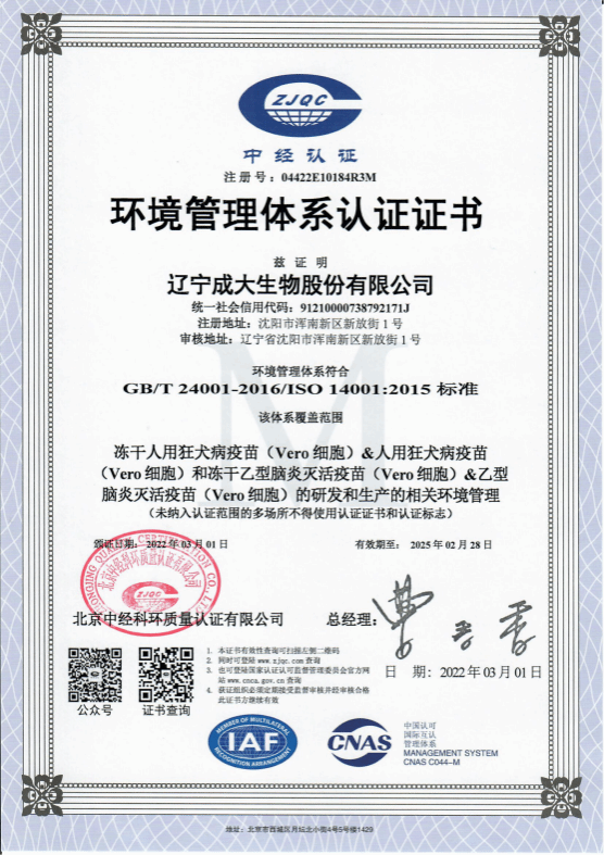 辽宁成大生物股份有限公司成立于2002年,以“提供优质生物制品,呵护人类生命健康”为企业使命,秉承“正直诚信、仁爱和谐、担当合作”的核心价值观,坚持“面对生命,只有责任”的企业理念,致力于成为国际级优秀的生物制药企业。