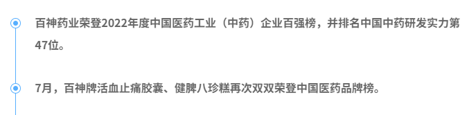 江西百神药业股份有限公司是一家集中成药、中药配方颗粒、中药饮片研发、生产和销售于一体的现代化制药企业,是江西省中成药制造行业龙头企业,江西省专业化小巨人企业,国家高新技术企业,中国医药工业(中药)企业百强榜企业,江西省智能制造示范单位。公司在江西宜春市和抚州市各有1个生产基地,总占地面积500多亩,厂房面积10万多平方米,公司拥有多条智能化生产线,药品剂型10余个,拥有药品生产批文630个,涵盖8大系列,已有558个中药配方颗粒品种完成了国标、省标备案;其中,中药配方颗粒、活血止痛胶囊、健脾八珍糕、灵芝浸膏片、蛇胆陈皮口服液等产品深受市场欢迎,百神中药配方颗粒成为江西中药配方颗粒第一品牌,百神品牌成为中国驰名商标。