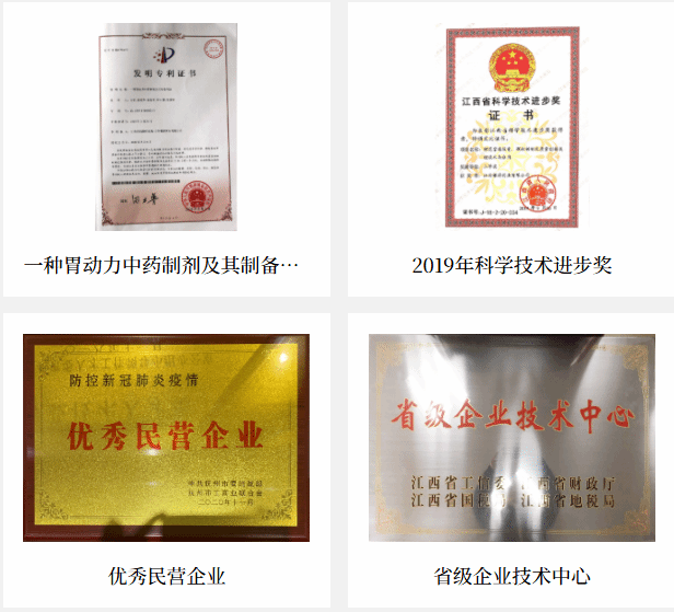 公司获评国家高新技术企业、国家知识产权优势企业、江西省优秀企业、江西省科技创新示范企业、江西省专精特新企业、江西省中成药骨干企业、江西省先进民营科技企业、江西省特级信誉纳税企业等荣誉称号。