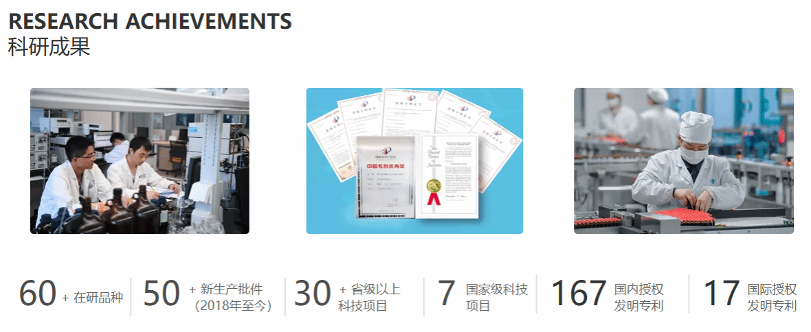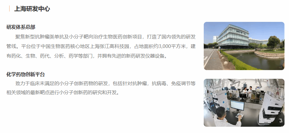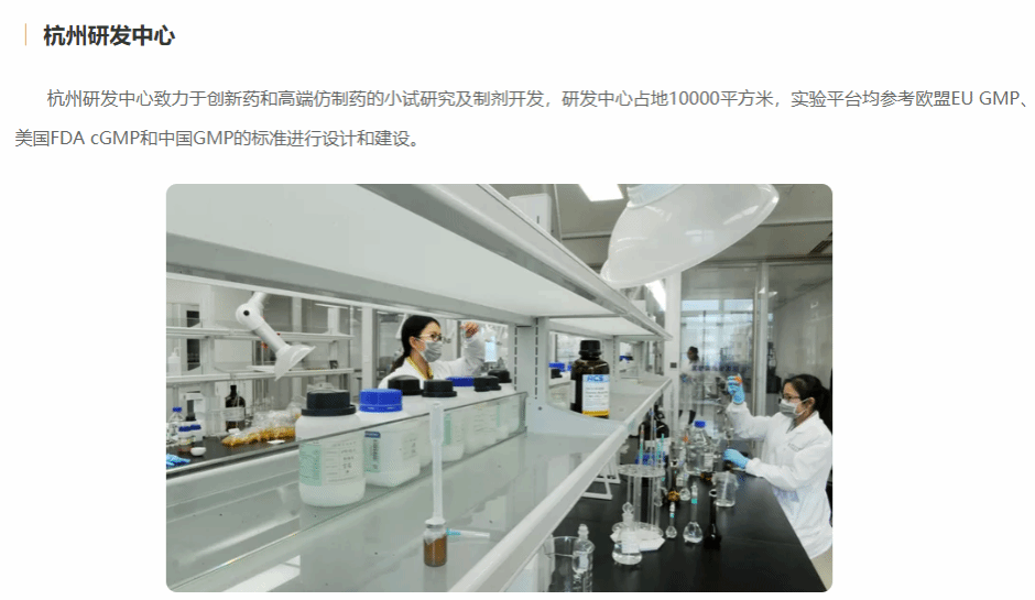 公司以研发驱动为发展战略,已在上海、北京、杭州、赣州等地打造了协同高效的化学创新药平台、高价值仿制药平台、创新天然药物平台、中试转化平台及全球体量最大的Class A级别生物医药创新专业加速器,形成了全球化、全链条的创新研发体系,在研新药品种近60个,多个创新药在美国开展临床研究。